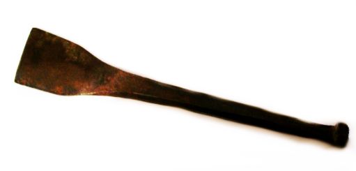 With Lanney‘s permission, I have decided to post photographs (left) of the one relic he was able to find and document. These images are of the caulking iron: an object whose worn texture can transport us to a time 300 years ago. Achan Lavoy was in possession of this tool and it quite possibly even came from his father-in-law, Jim Mackey. Achan and/or Jim would have used this 12 inch long iron with a mallet to drive tarred rope into the joints between wooden planks on a boat. The hammer marks that are clearly visible on the tool suggest that it was hand forged. These images, however small, give us all an opportunity to imagine an era and a lifestyle that we are only a few generations removed from today.