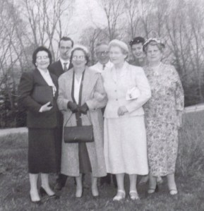 The Leavoy sisters in 1956. In the front row are (left-right): Pearl (Leavoy) Hazlett, Iva (Leavoy) Burwash, Tressa (Leavoy) Gates, Ellie (Leavoy) Henderson. Photo courtesy of Garnet Leavoy.
