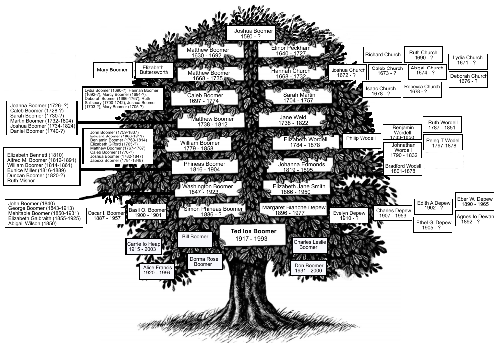 My grandfather Ted Ion Boomer (“T.I.”) descends from a family that has been in North America since the coming of the Mayflower!