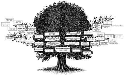 My grandmother Norma Merle Dixon descends from a family that originally came from Armagh, Ireland with her great grandfather to Rockwood, Ontario (outside of Guelph) before homesteading in the small farming town of Rocanville, Saskatchewan. I’ve traced the family back 4 generations to my great x 3 grandparents John Dixon & Catherine McQuillan who both came to Canada before starting their family. Their son, my great x 2 grandfather Joshua Richard Dixon, and his wife Sarah Melissa Ammerman were both born and raised in Ontario, and started their family there too, before deciding to make their way out west to Saskatchewan looking for cheaper land. Their son, my great-grandfather  Alvin Moody Dixon, born when his family was living in Mount Forrest, Ontario stayed in Rocanville. He farmed in the town along with his wife Lula Ann Jane Millin, who came from another homesteading family.