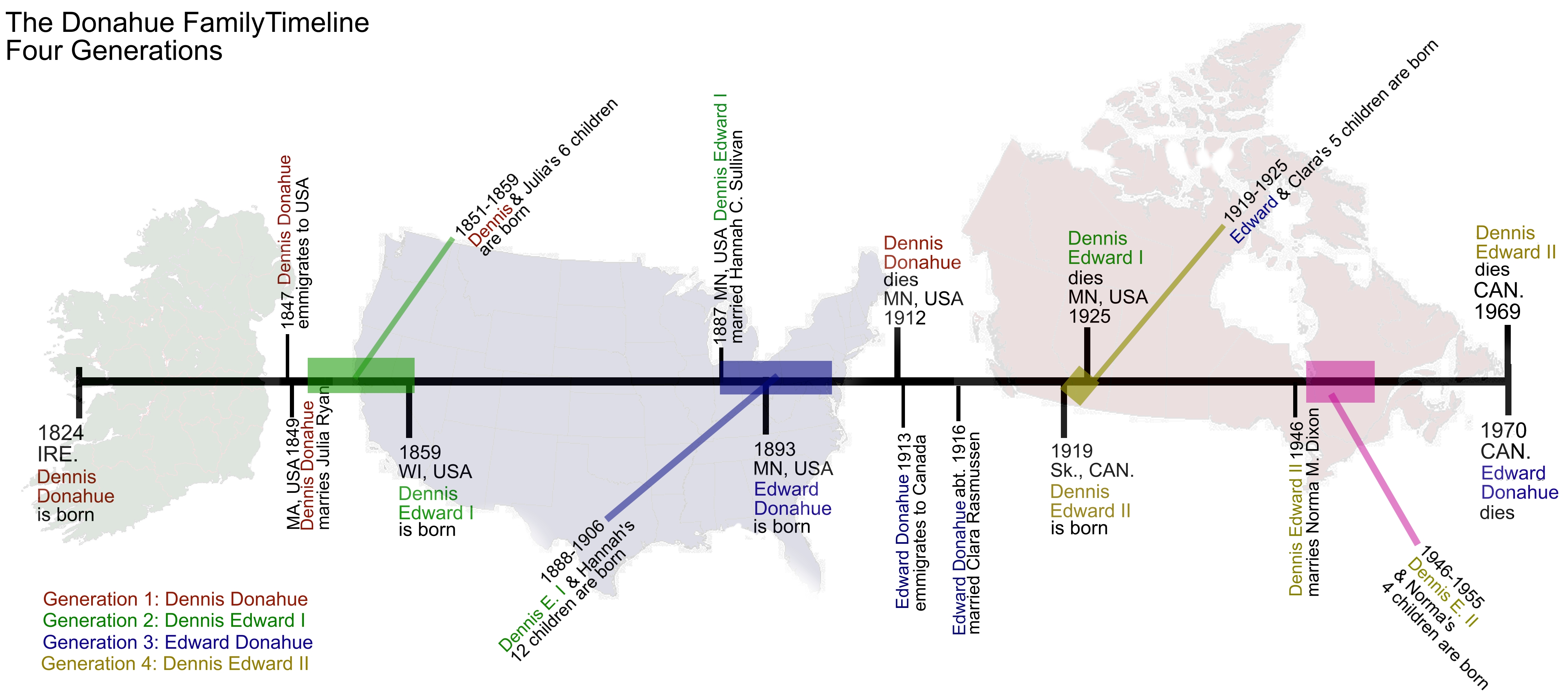 My grandmother, Elizabeth V. O’ Donahue, was Dennis Edward’s sister. There were actually 14 children, but the twins died when they were babies. Elizabeth married John Snyder and they lived in Rochester, MN for many years. We’d love to communicate with you and have an opportunity to learn and share more information. Anne