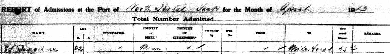 On April 9, 1913 (only 3 years later), Edward suddenly made his way up to the Canadian border. I don’t know of the reason for this, yet I have the border crossing document from North Portal, Saskatchewan.