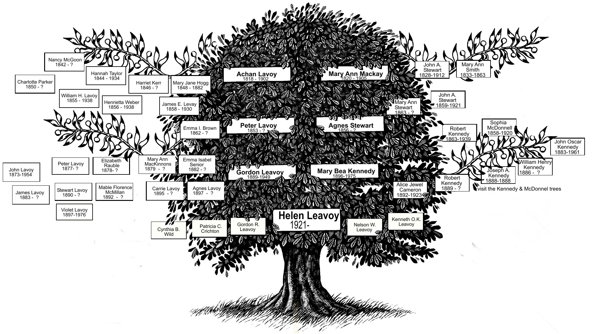 The stories of these individuals, and of the McDonnells, the Kennedys, and the Harrowers can be accessed through the Leavoy drop-down menu at the top of the screen. You will also find stories of other Leavoy family members in the extended family research blog where I continue to write a series of articles titled “What Happened to All Those Other Leavoys?…” Links to these individuals will be on the Leavoy family pages. More to come!