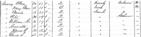 I’ve also found them on the next federal census in 1881 (Renfrew South) in their 60s and living with their youngest child (19-year-old daughter) Amey (as listed by W.R. Leavoy), and at that time Achan is still working as a laborer. This should be read against W.R. Leavoy’s description of the migration along the Madawaska with the receding forest.