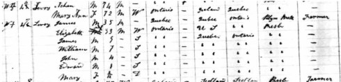 In the 1891 federal census Achan (listed as a farmer) and Mary Ann live in North Hastings on a neighboring property to their son James (35) and his wife and family of 4 sons and infant daughter.  It appears that in their old age James and his wife likely helped to support Achan and Mary Ann. In this census they are living in the area near Cumbermere as described by W.R. Levoy, so again, this aspect of the story is confirmed.