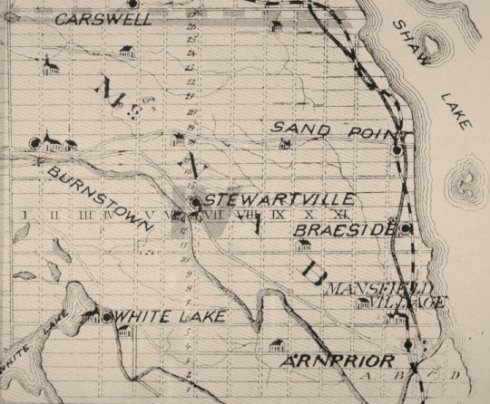 This map shows the McNab area where the Leavoy family resided for at least 2 generations. The Madawaska river, which flows from Burnstown down to the Ottawa river was crucial to the loggers of the time. Logs were floated down to the Ottawa river and on to Quebec.