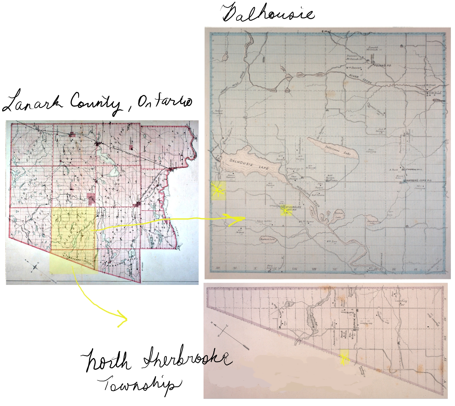 On a drive out to Lanark county around 2005, my mother and I made a visit to three major sites of McDonnell/Sergeant Family milestones: the small town of McDonald’s corners where John and Alice married, Crawford Cemetery outside of town where they’re buried, and the McDonnell family homestead in North Sherbrooke where John was born.