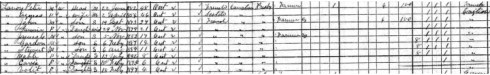 The 1901 census shows Peter and his son John made $1.50 in extra earnings during the year from farming, while Gordon (14), Stewart (11) and Mable (8) attended school 8 months of the year. The family had burgeoned to 11 children with the addition of Mable and two other daughters- Carrie (6) and Violet (4).